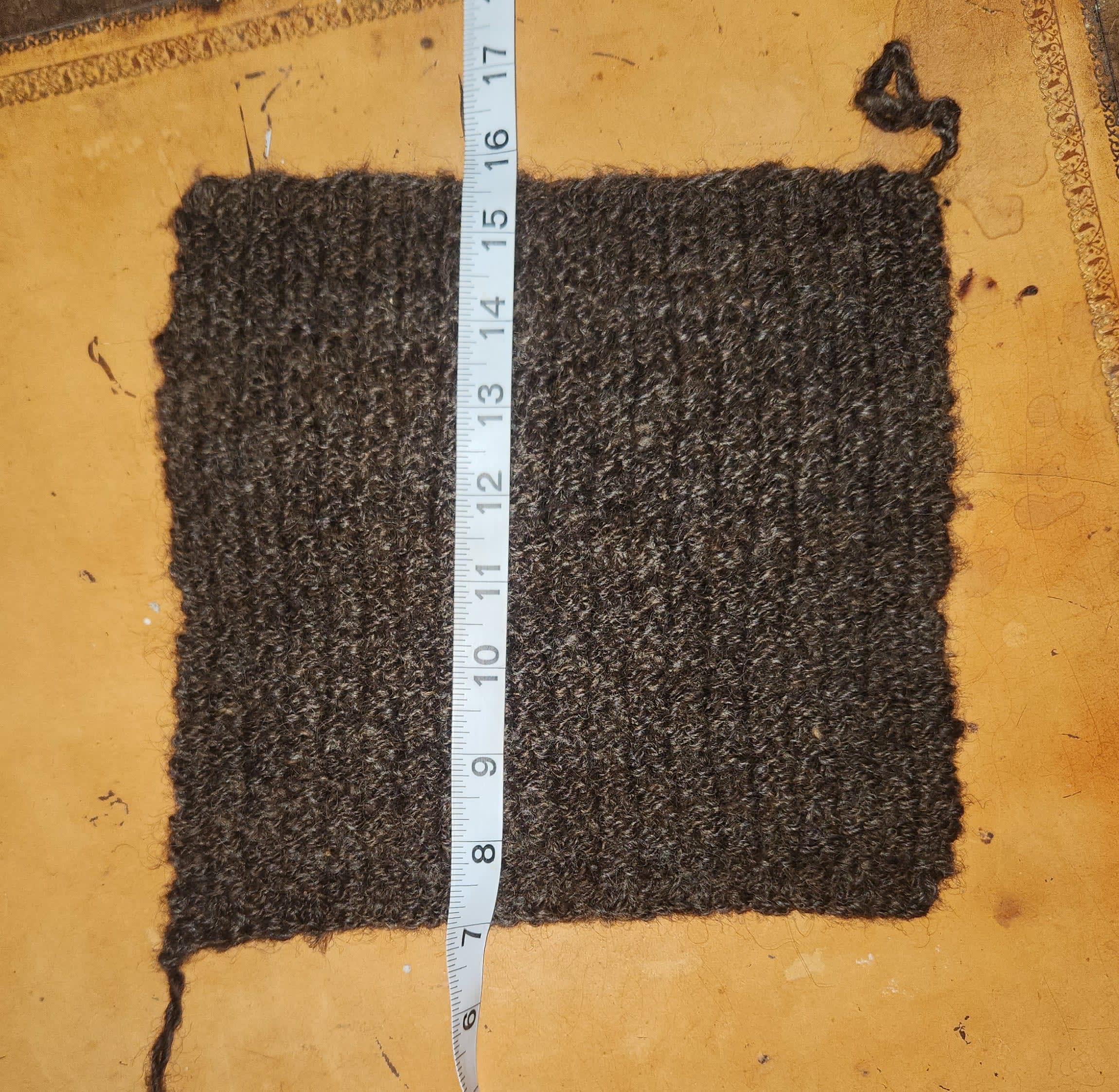 Cast on is long tail. I cast on the second brown square and did four sets of rows (a set of rows is 4).