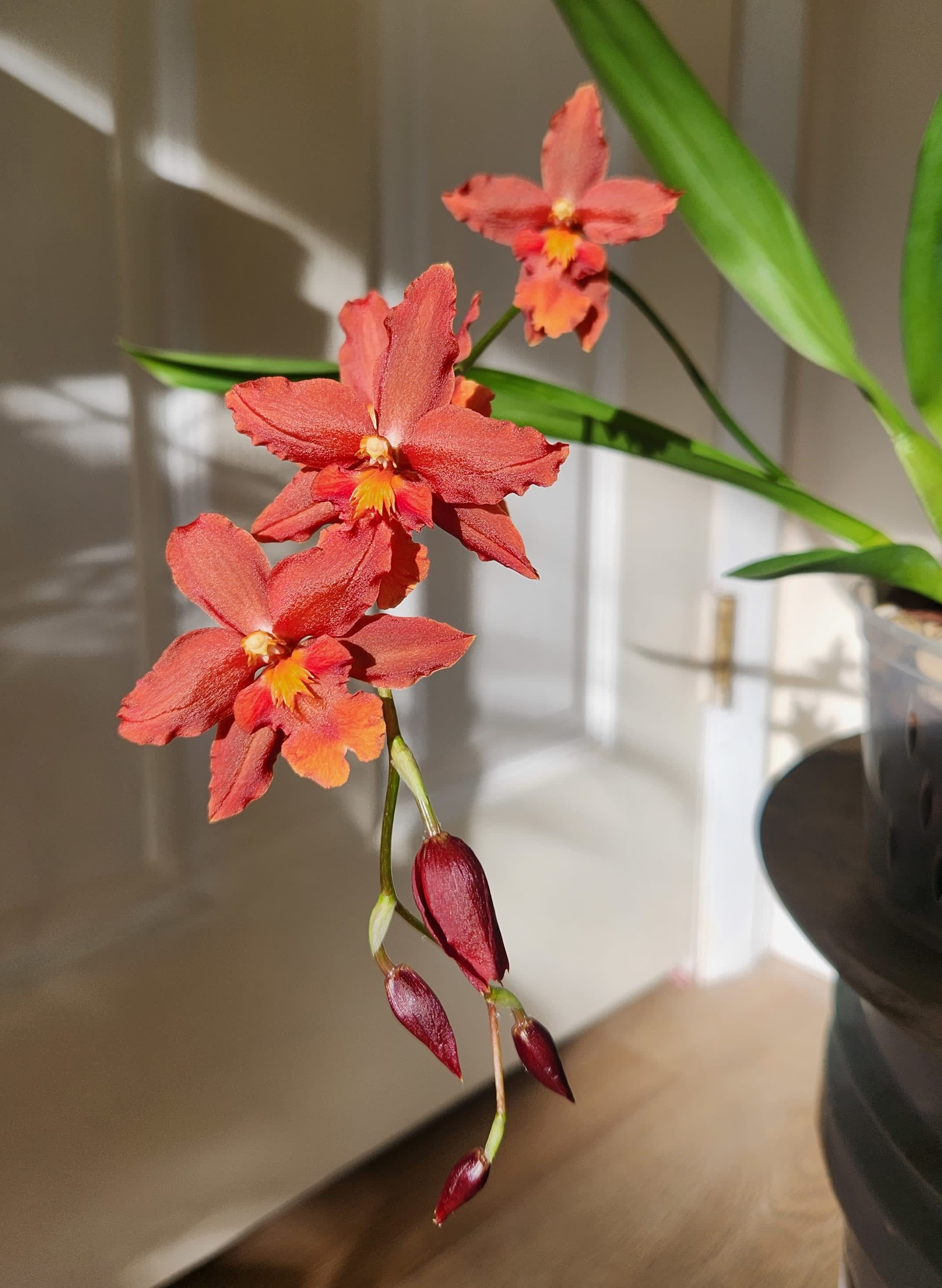 Jan. 26th, 2026 07:22 pmI'm waiting on a variety of orchid blooms, but here recently Wilsonara Space Mine Red Rendezvous has provided in the bloom department. Also, the pothos is looking... different now that it is a ways up the moss pole and equipped with its own sun.